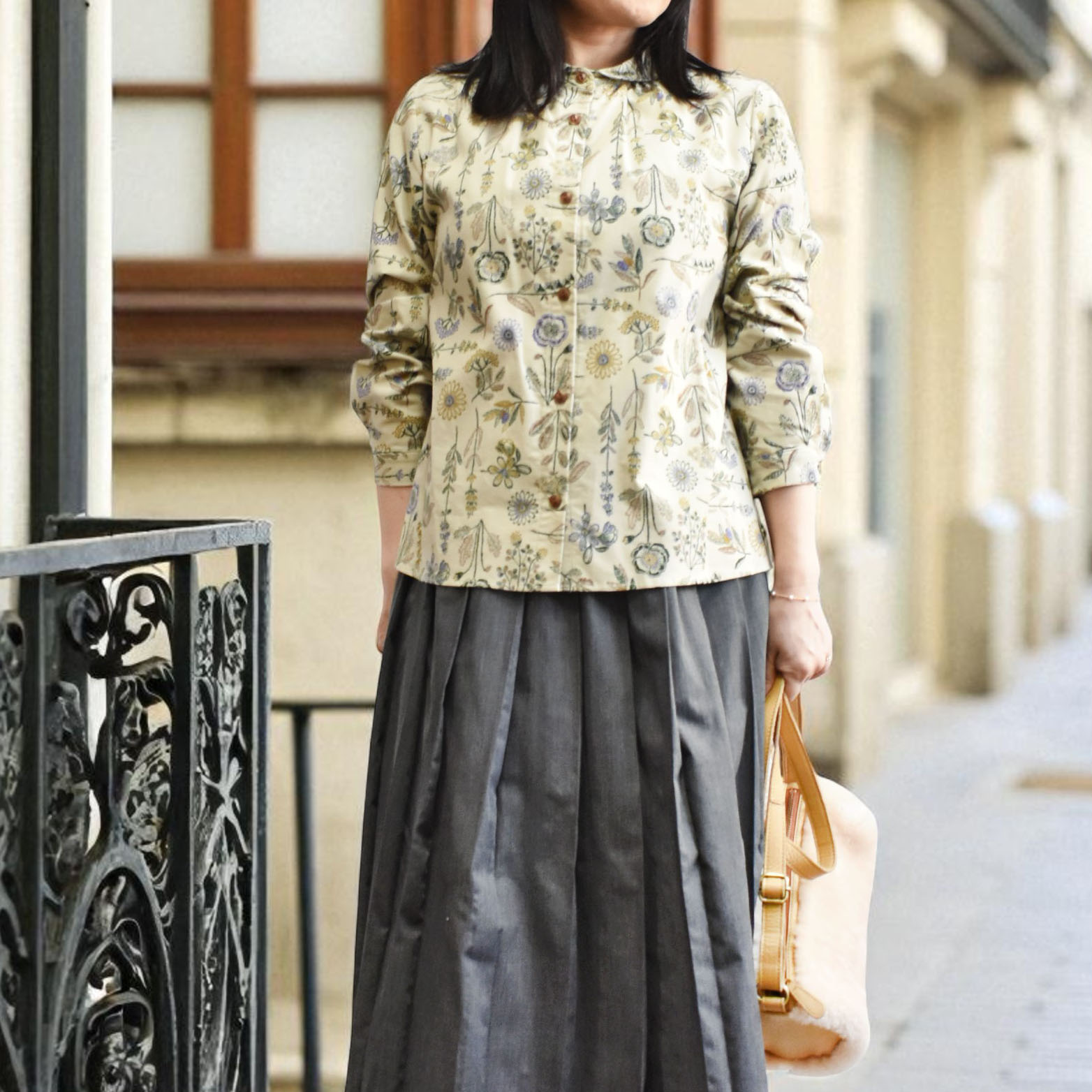 ローン パリの街並み柄ブラウス