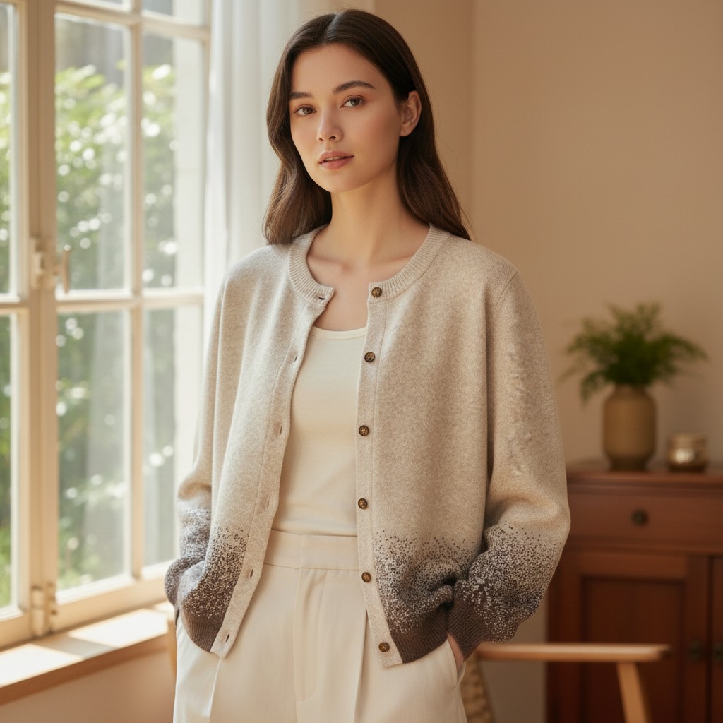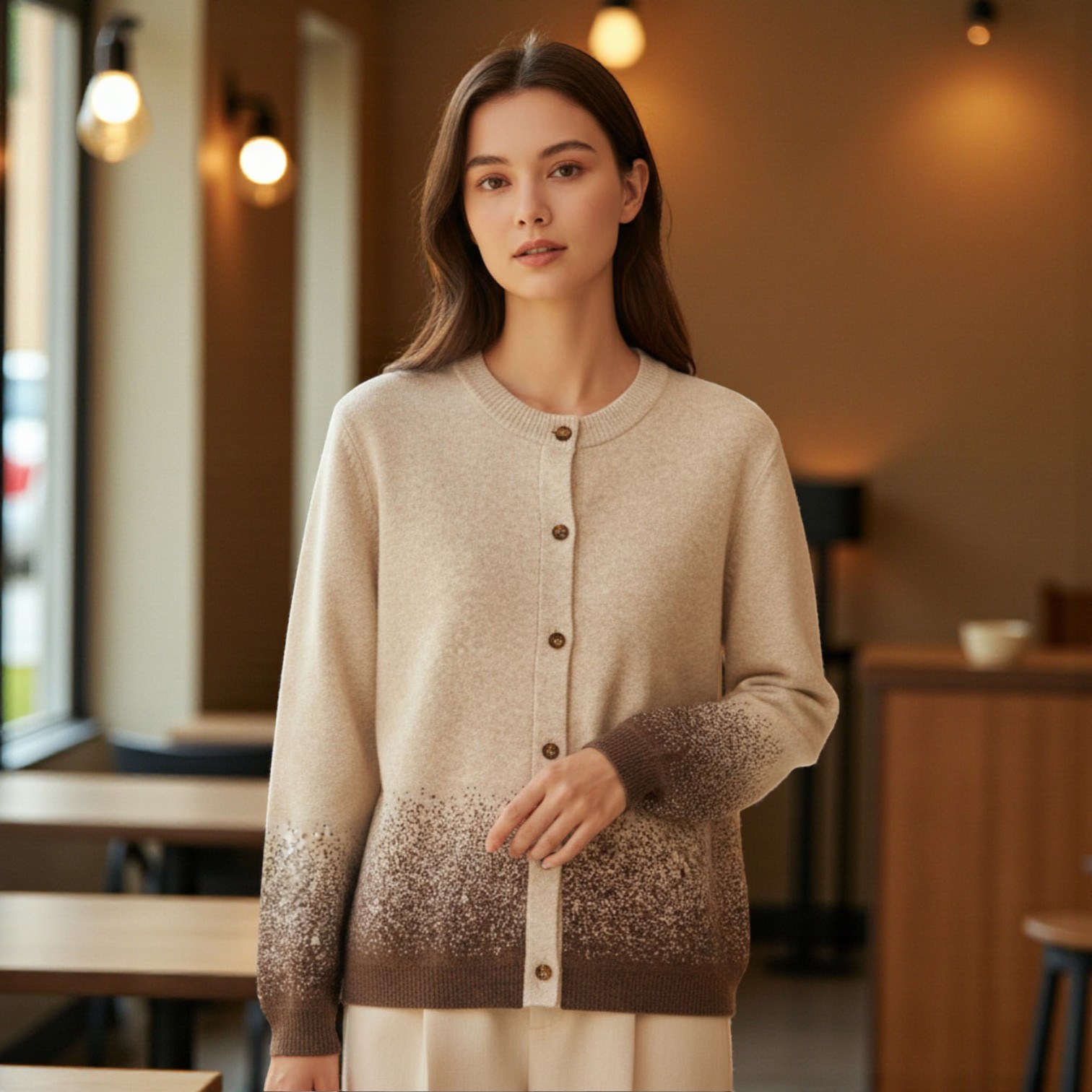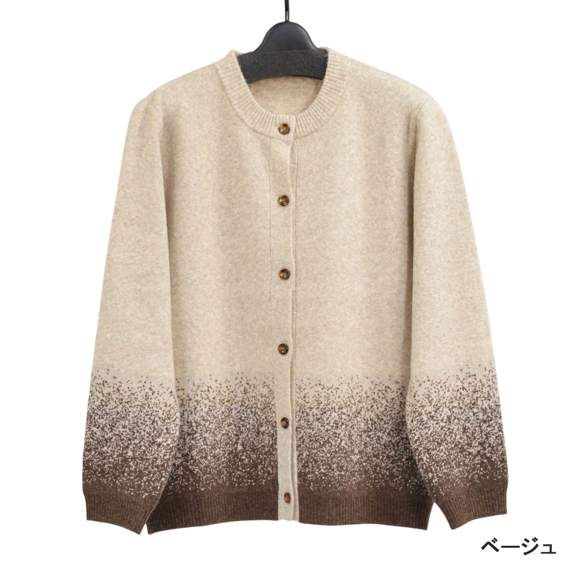 裾や袖に向かってグラデーションになっているのが可愛いカーディガン。