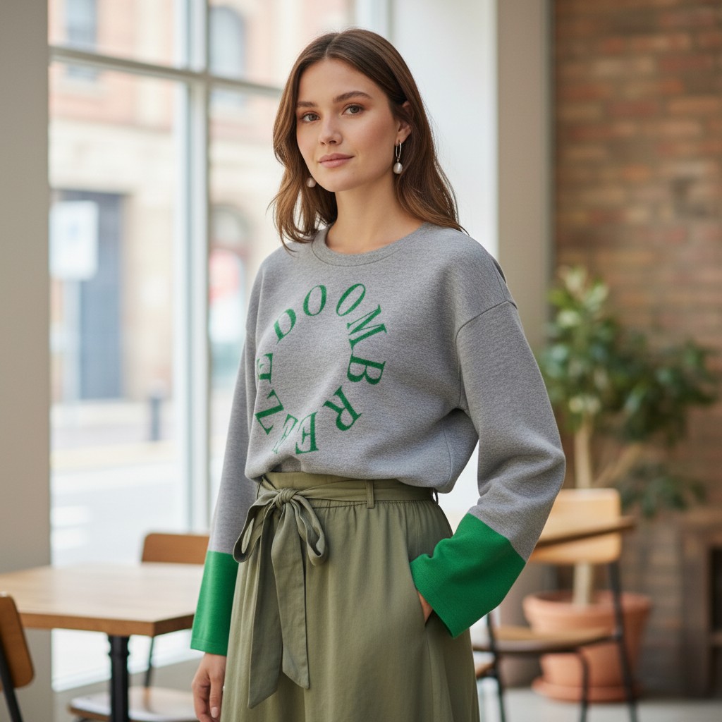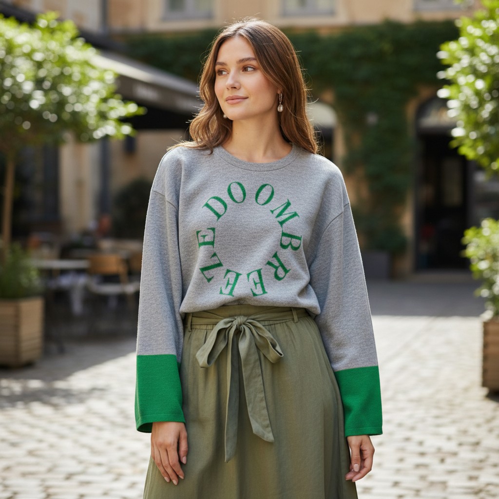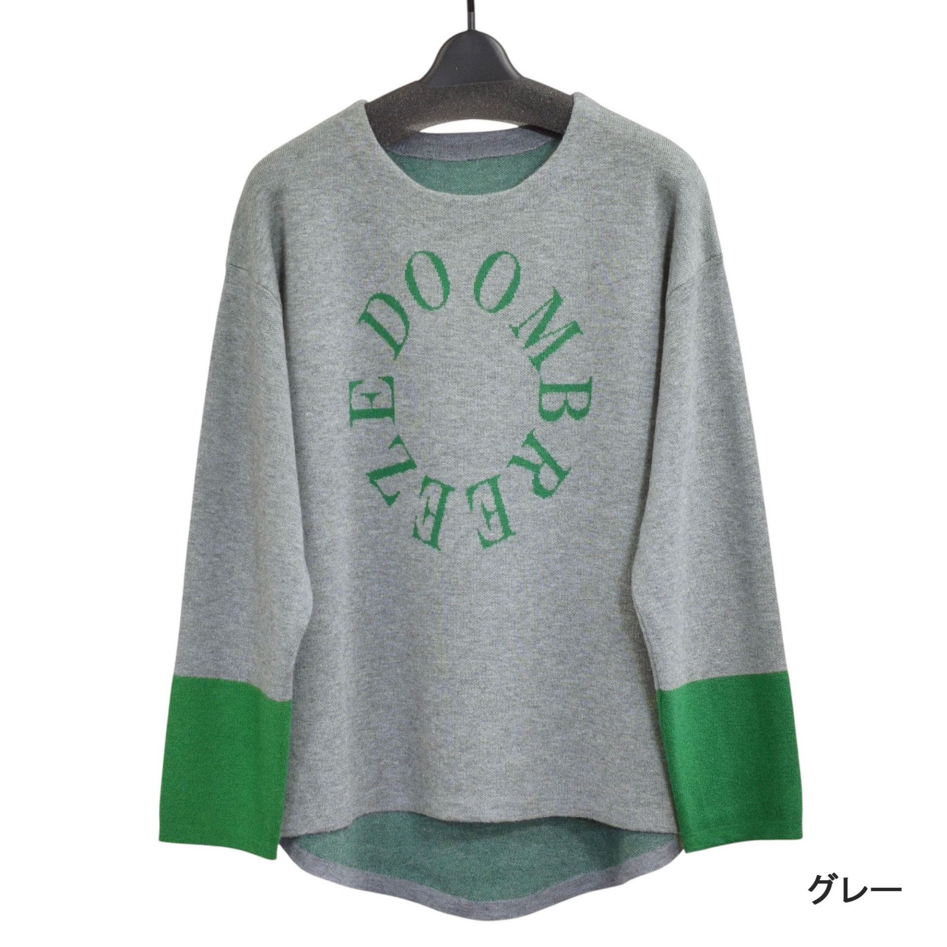 袖の配色と円形の英字ロゴが可愛いプルオーバーです。