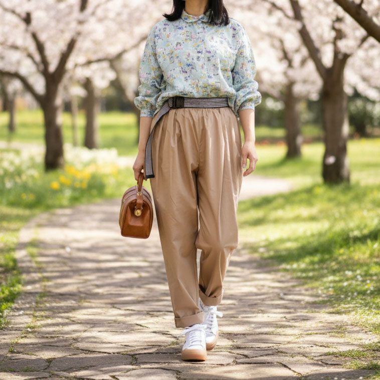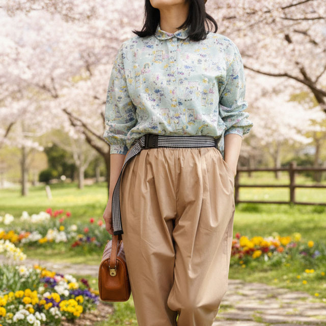 パンツにもスカートにも合わせやすく、春先から初夏まで長く着用いただけます。