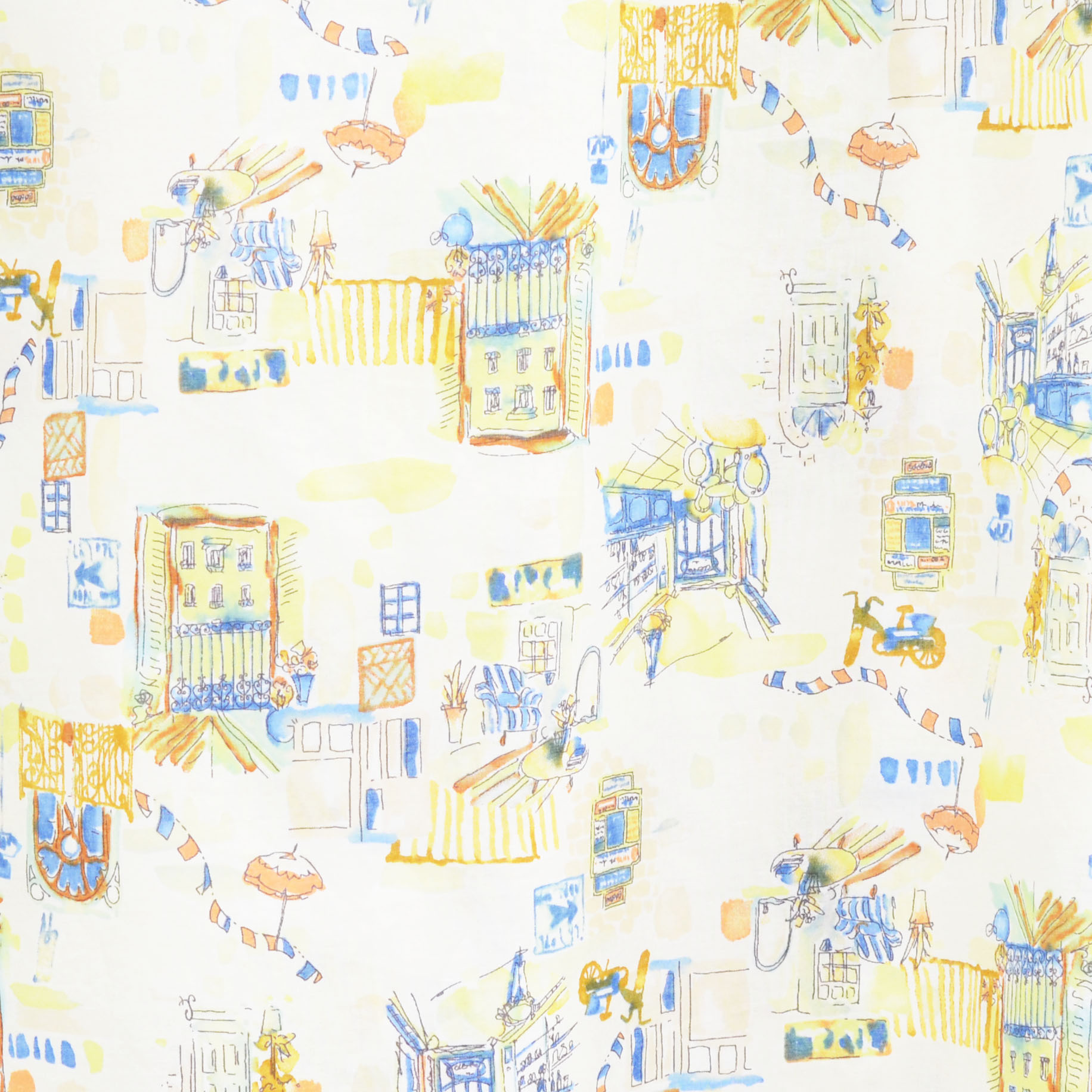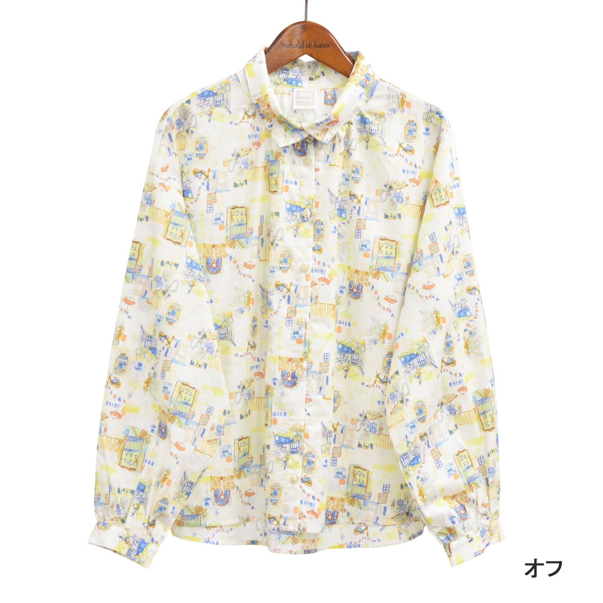 明るく華やかなカラーながら、イラスト調の繊細な柄使いで落ち着きもあり、 ナチュラル・カジュアルスタイルにおすすめの一枚です。