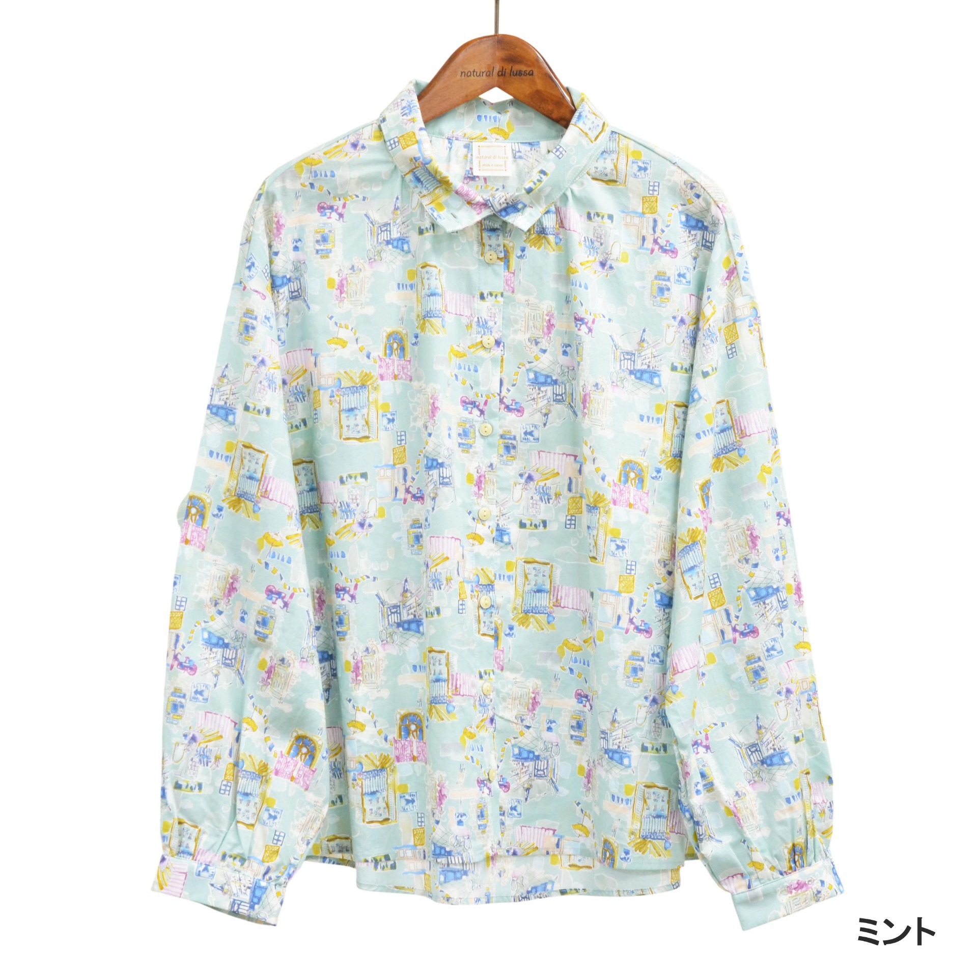 前開き仕様なので、ブラウスとしてはもちろん、軽い羽織りとしても活躍します。