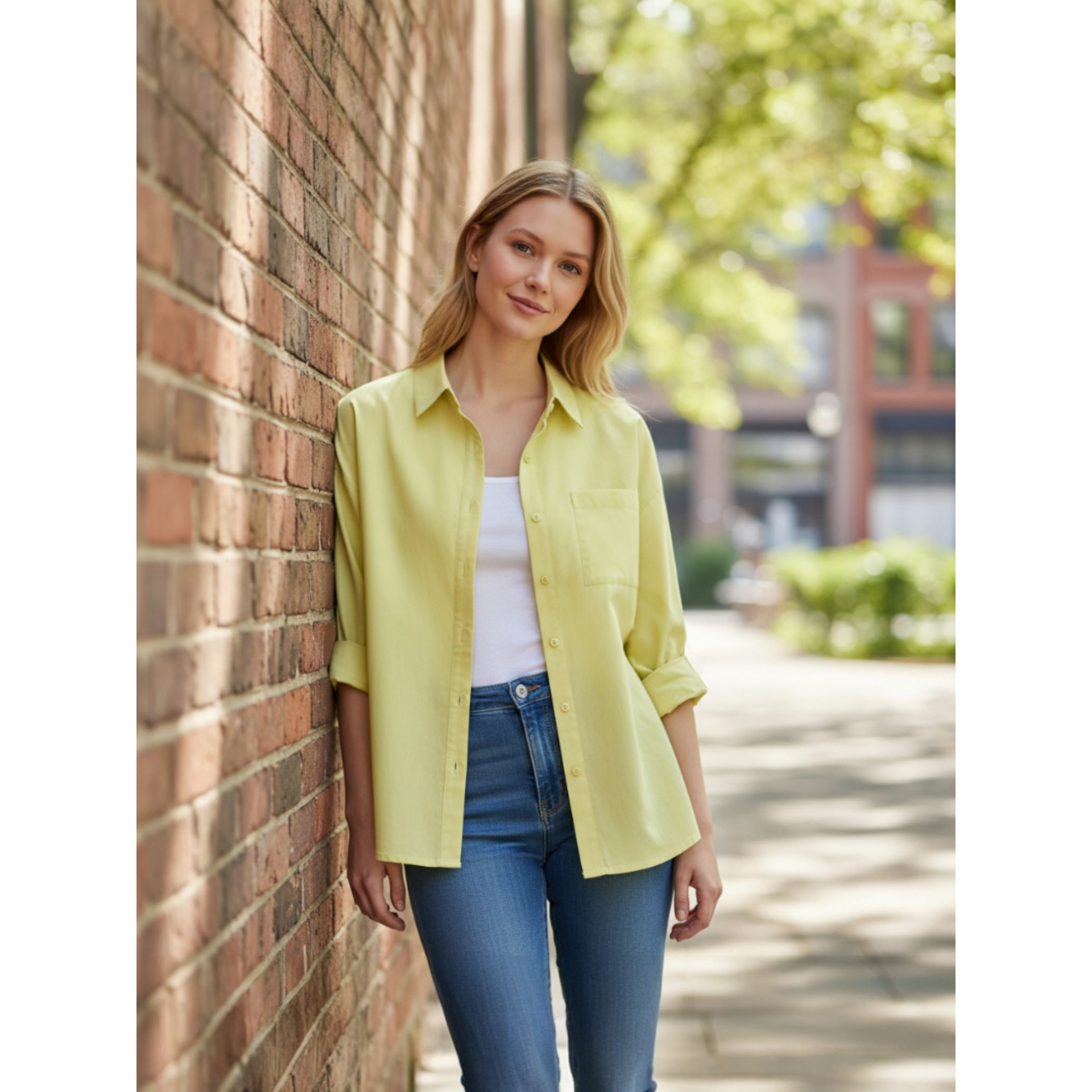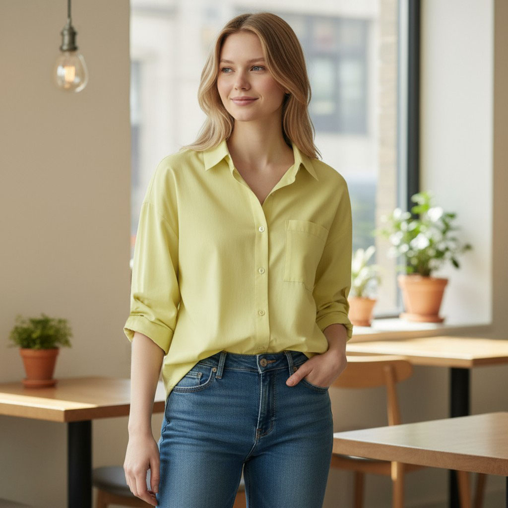 無地ポケット付きシャツ