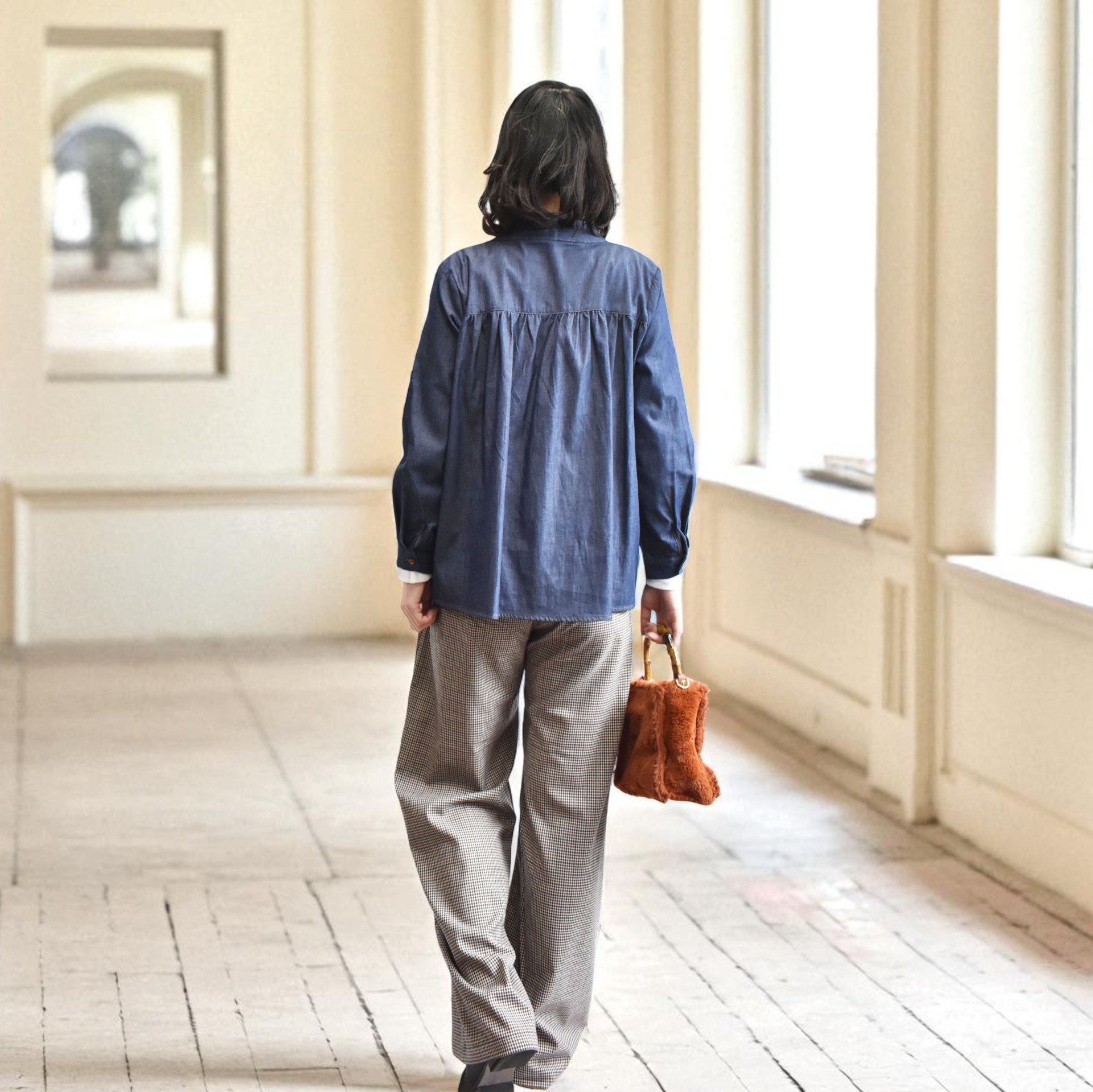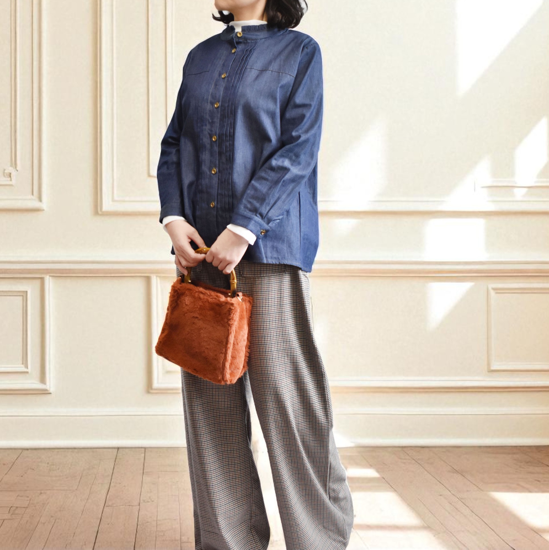 程よい厚みのデニム素材に、細やかなタックを施した上品なデザインシャツ。 カジュアルになりがちなデニムに繊細なディテールを取り入れることで、ナチュラルさの中にきちんと感をプラスしました。