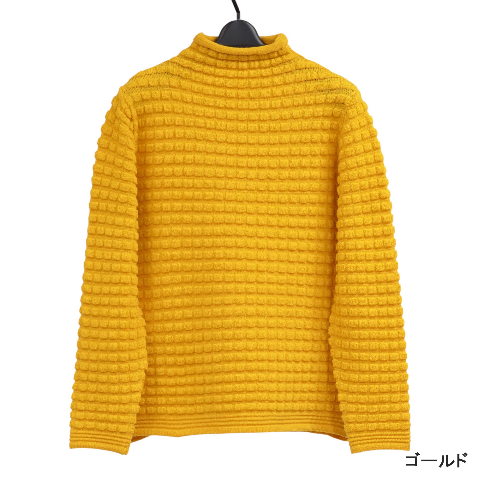 規則的に並んだポコポコとした表情豊かな編地が、シンプルなシルエットに豊かな陰影を生み出し、コーディネートに洗練されたアクセントをプラスします。