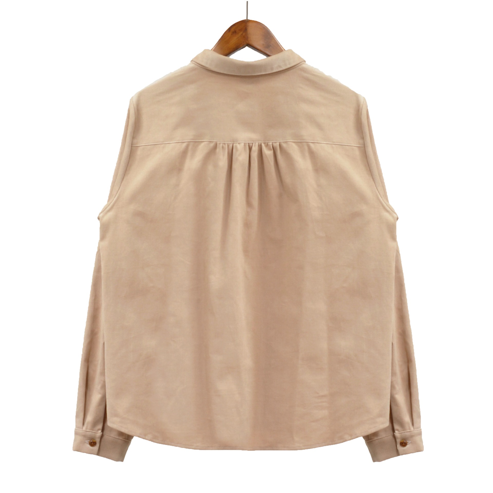 ほどよい細畝のコール天素材を使用した、季節感たっぷりのギャザーブラウス。