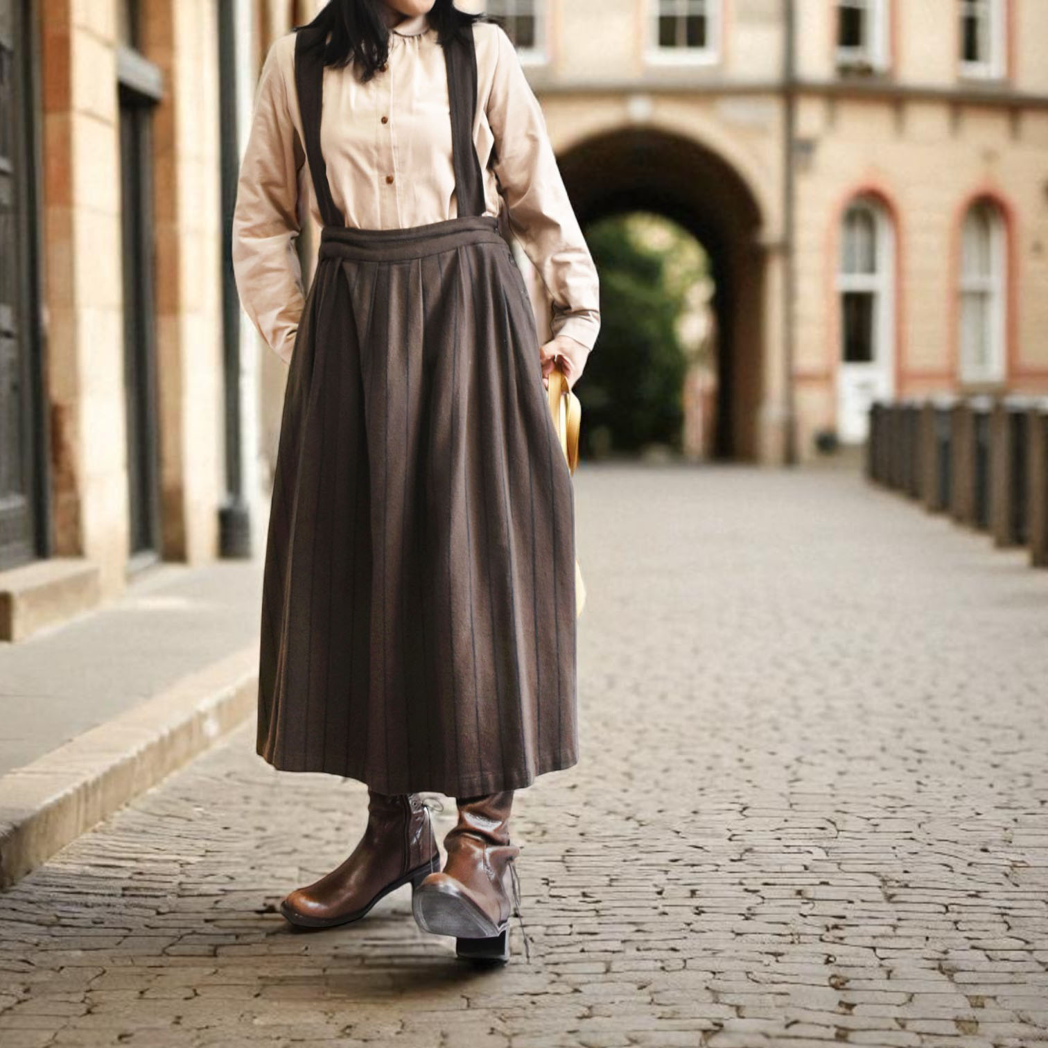 すっきりとしたシルエットで着膨れしにくく、ジャンパースカートやニットとのレイヤードにも相性◎。