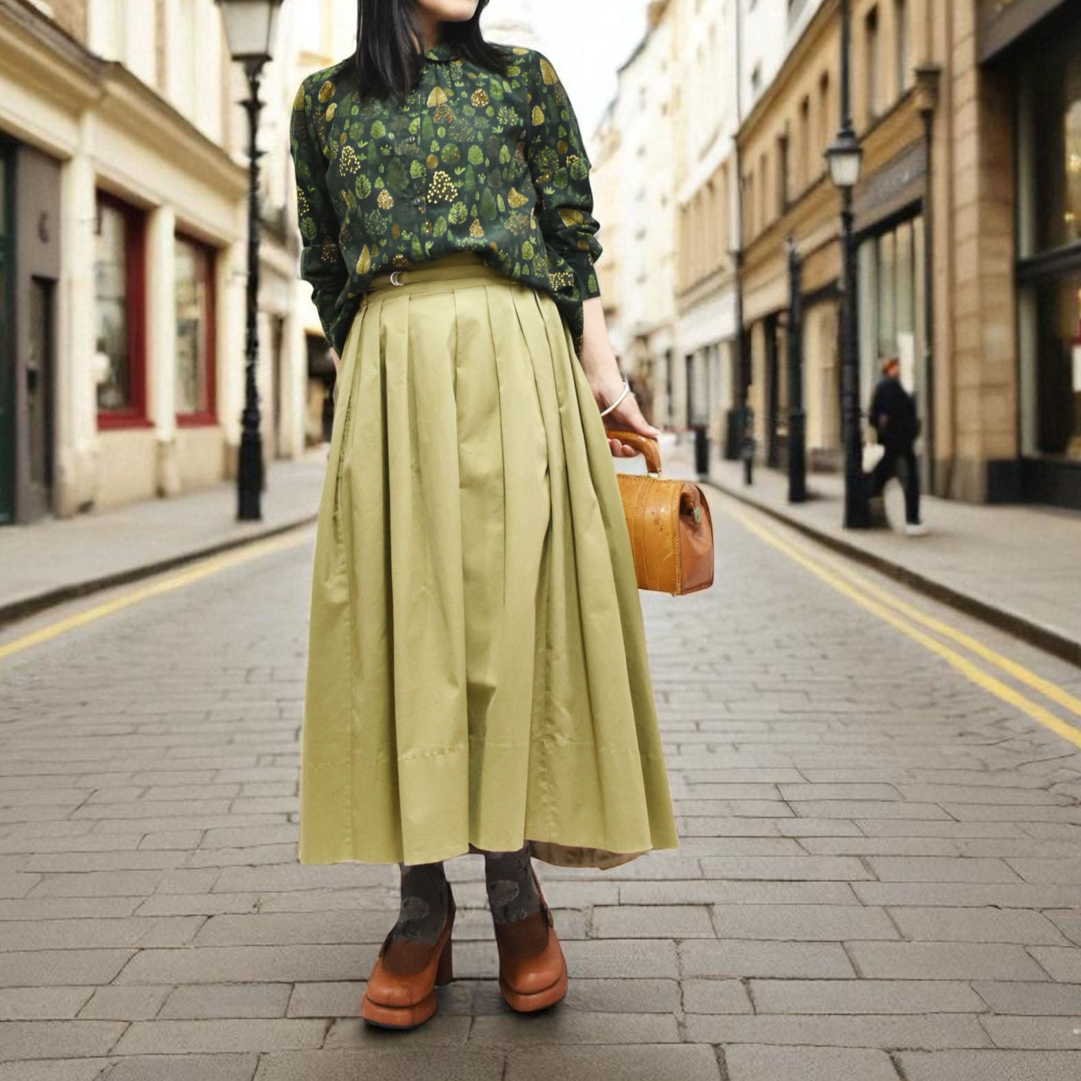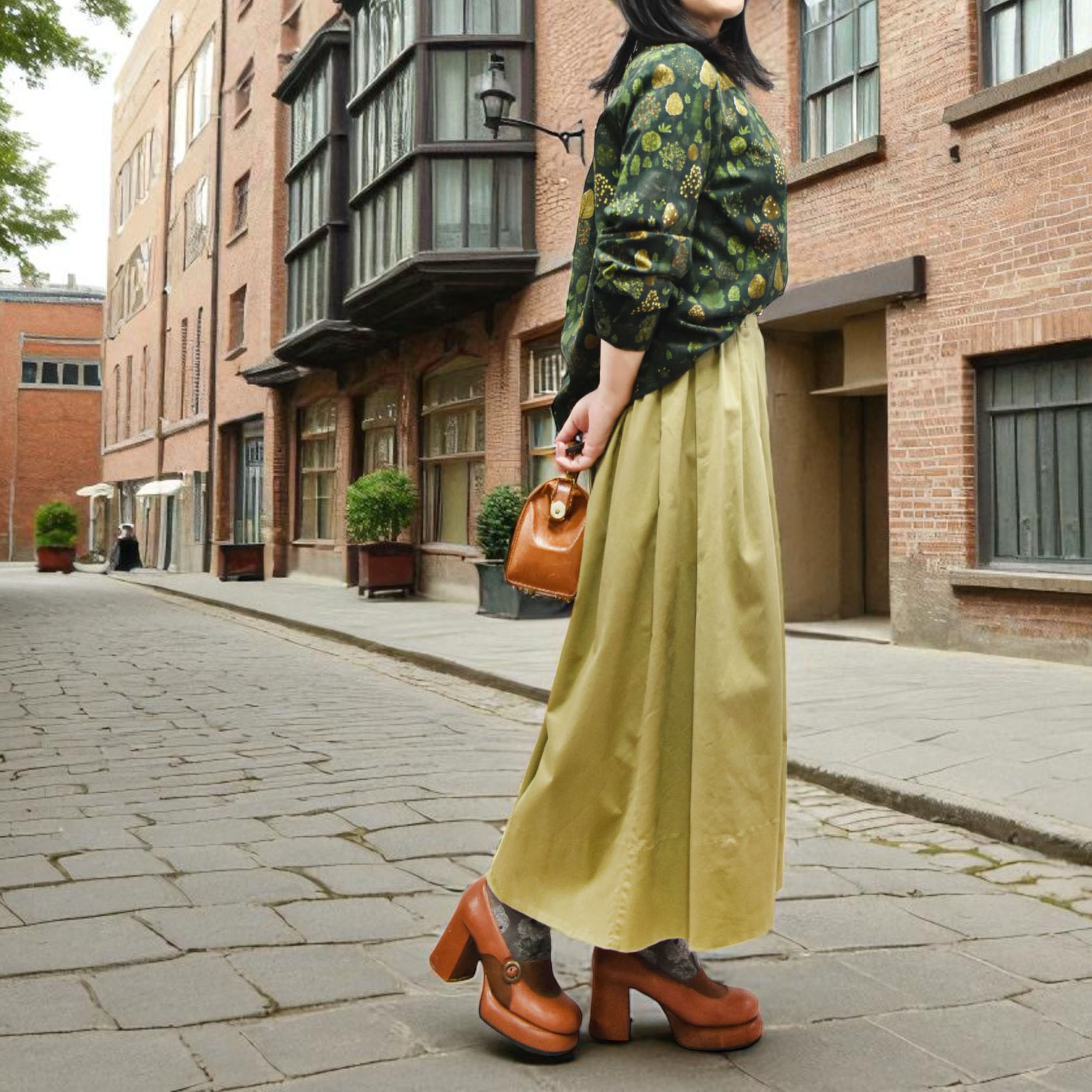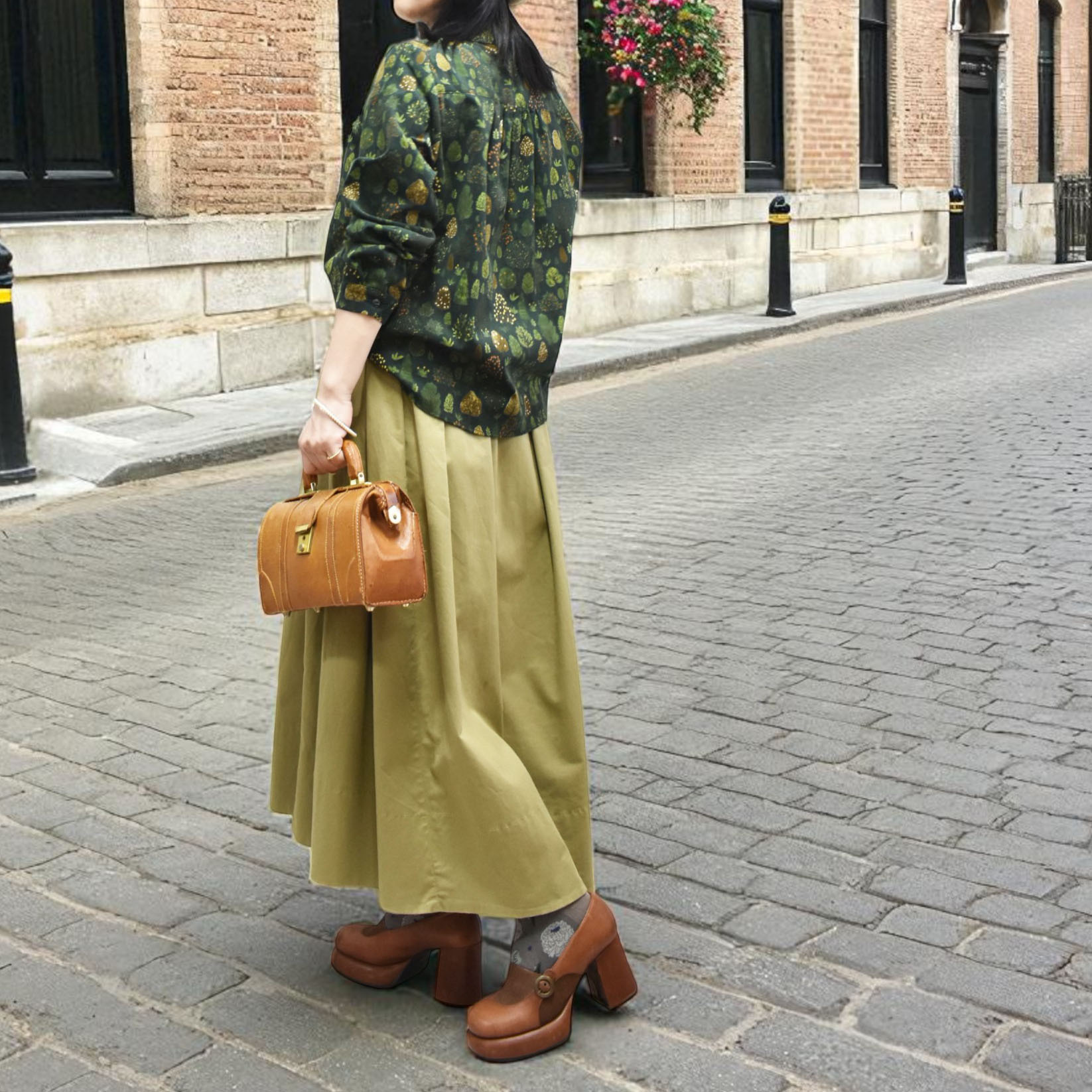 繊細な草花を散りばめた生地は、派手すぎず落ち着いた色使いで、普段のコーデに自然と馴染みます。