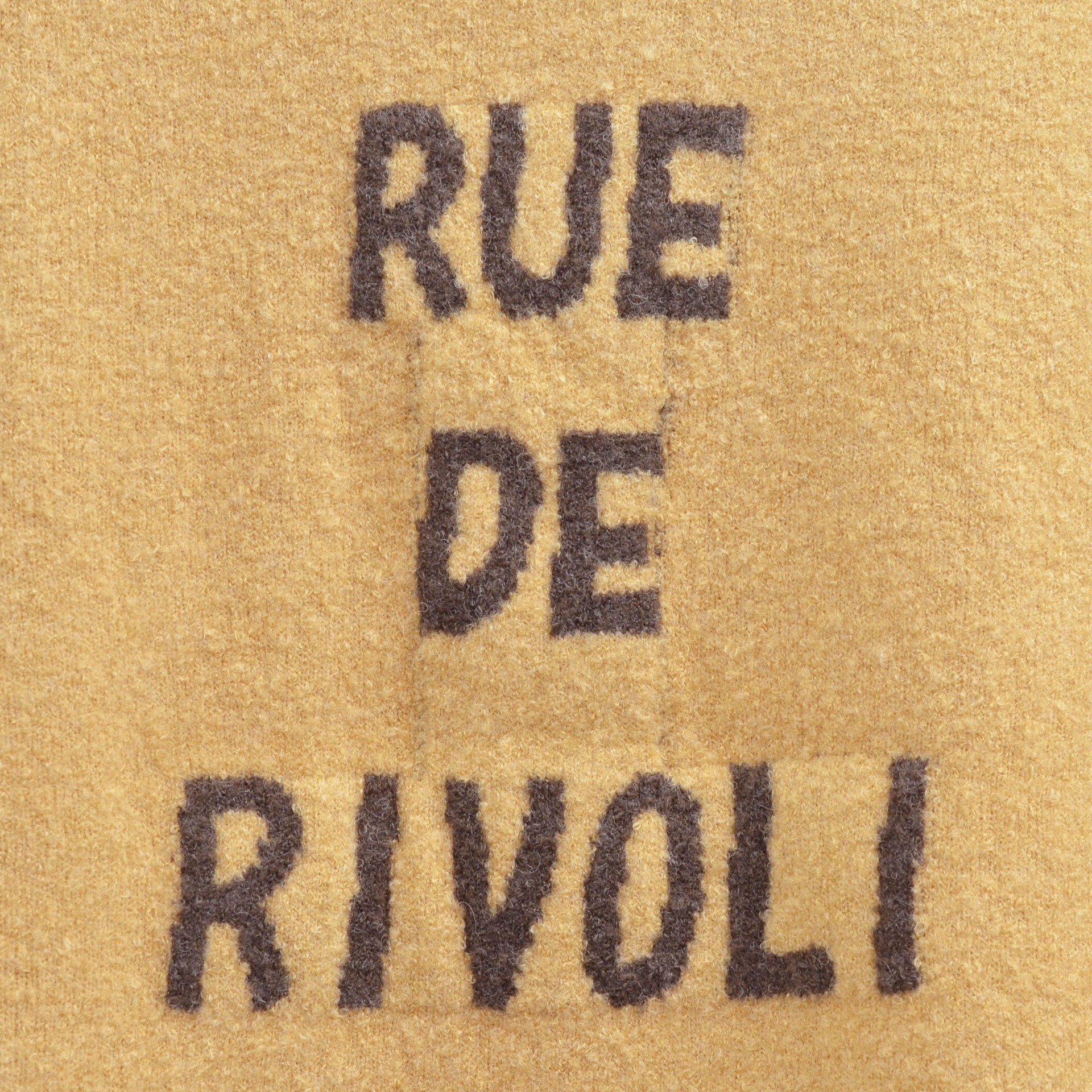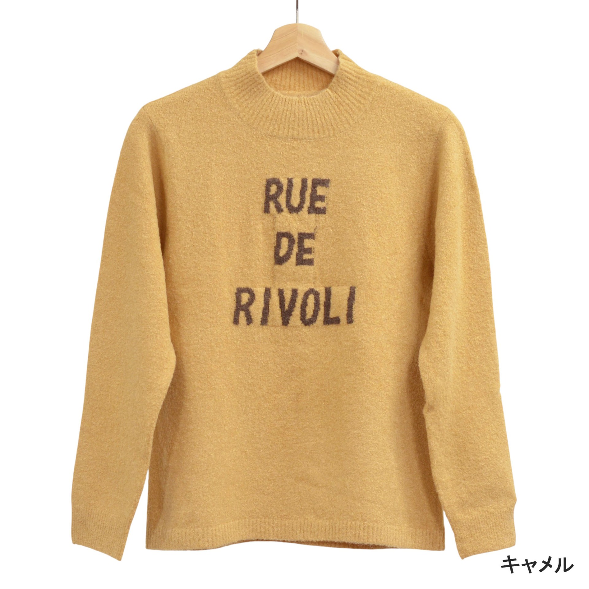 ふんわりとしたブークレー素材が魅力のロゴ入りハイネックニット。