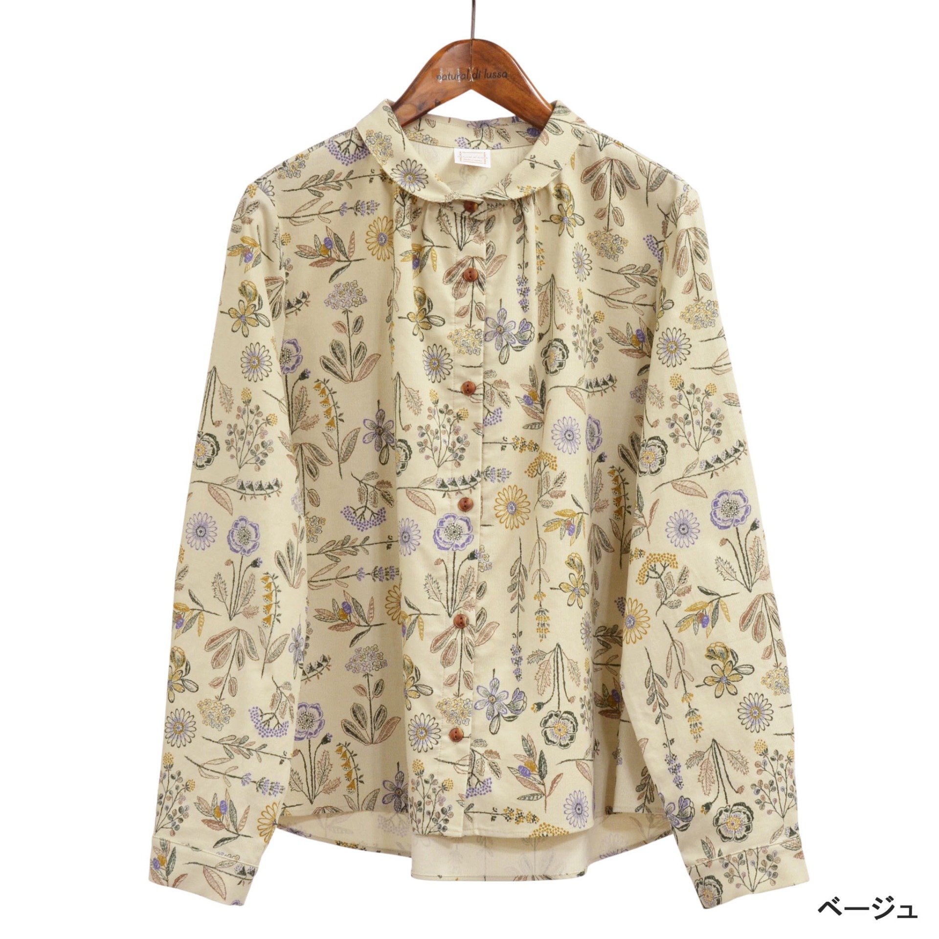 やさしいタッチのボタニカル柄が、装いにそっと季節感を添えてくれる大人ナチュラルなブラウス。
