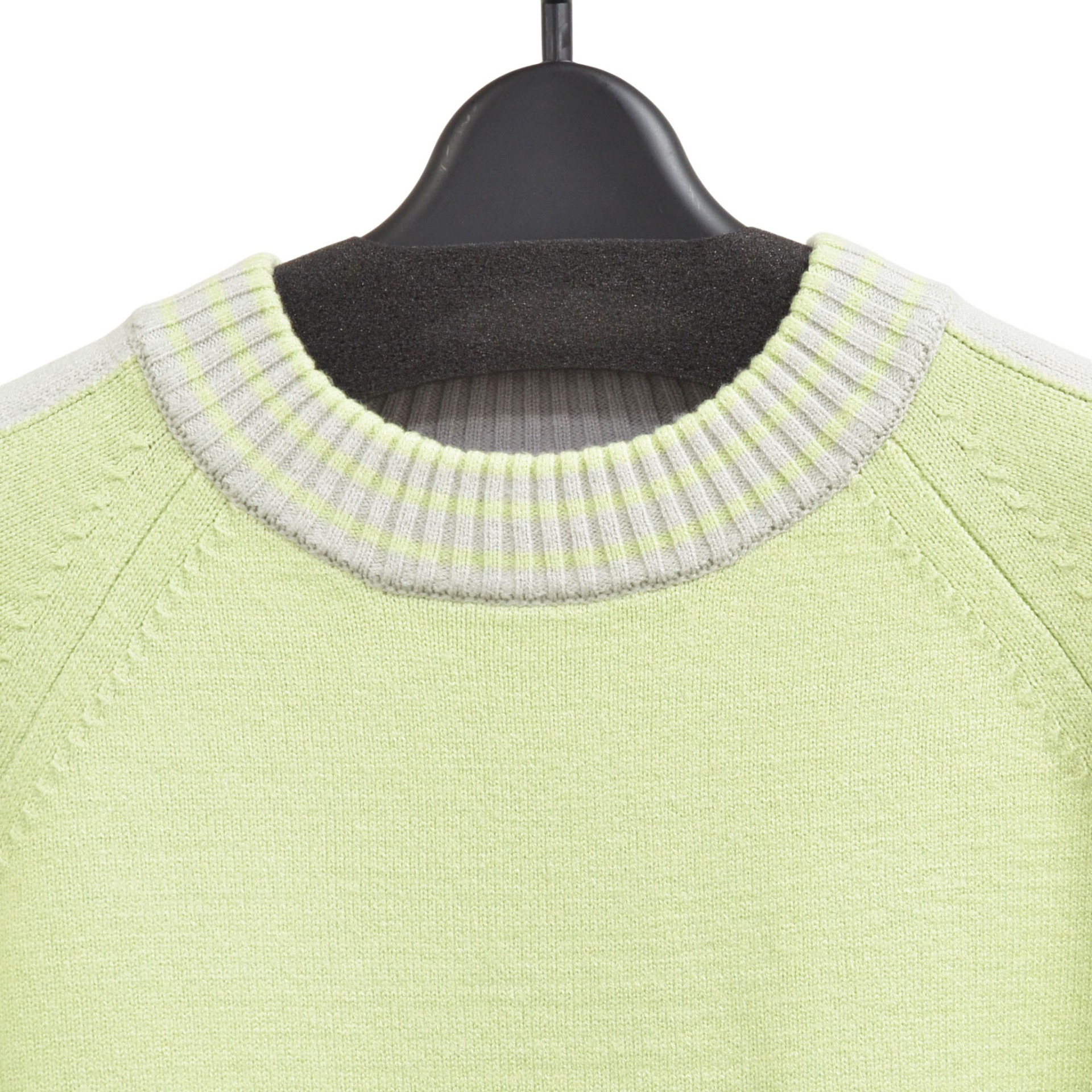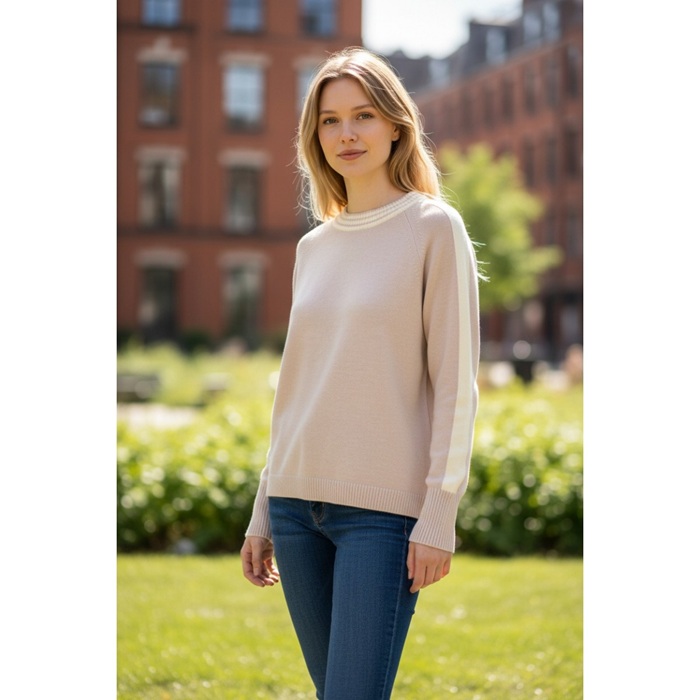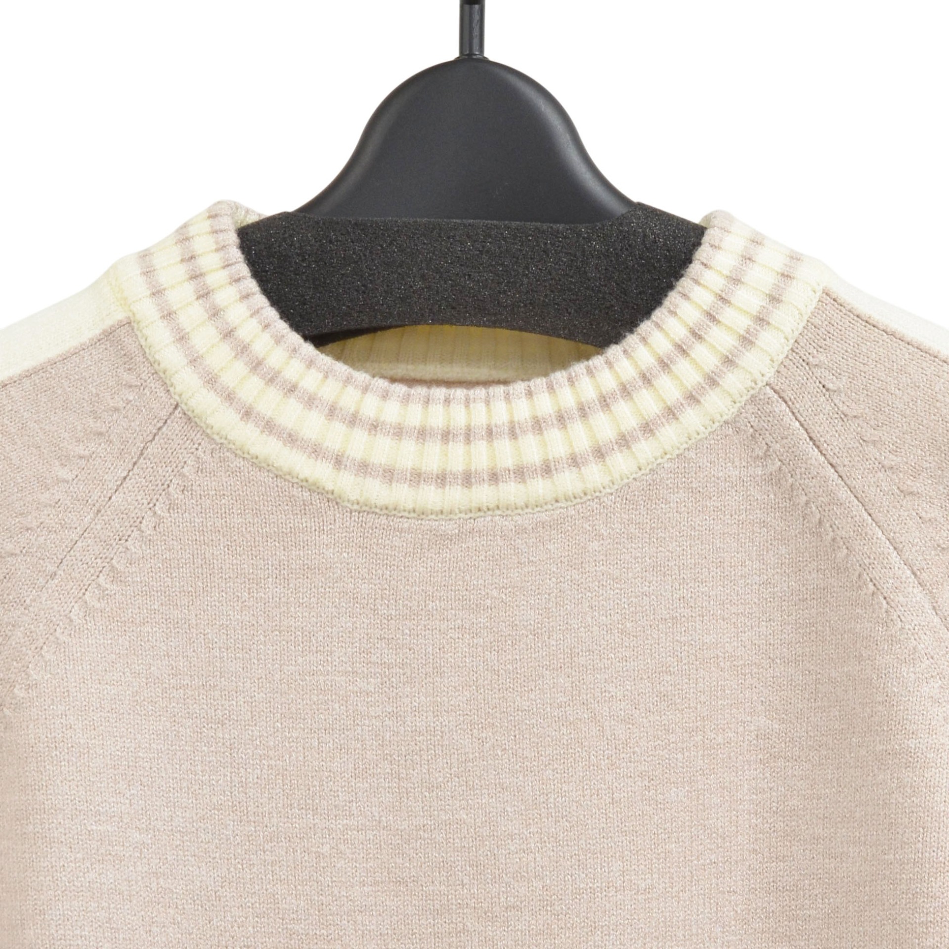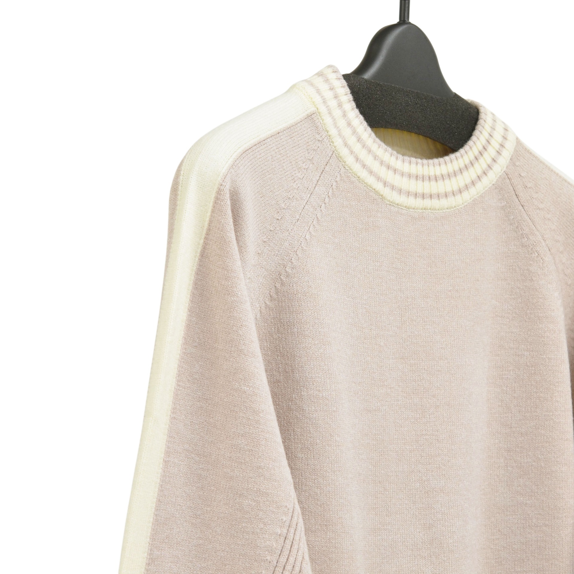 身頃はシンプルな無地で、袖と襟元に控えめな配色ラインを施し、コーディネートに程よいアクセントをプラス。