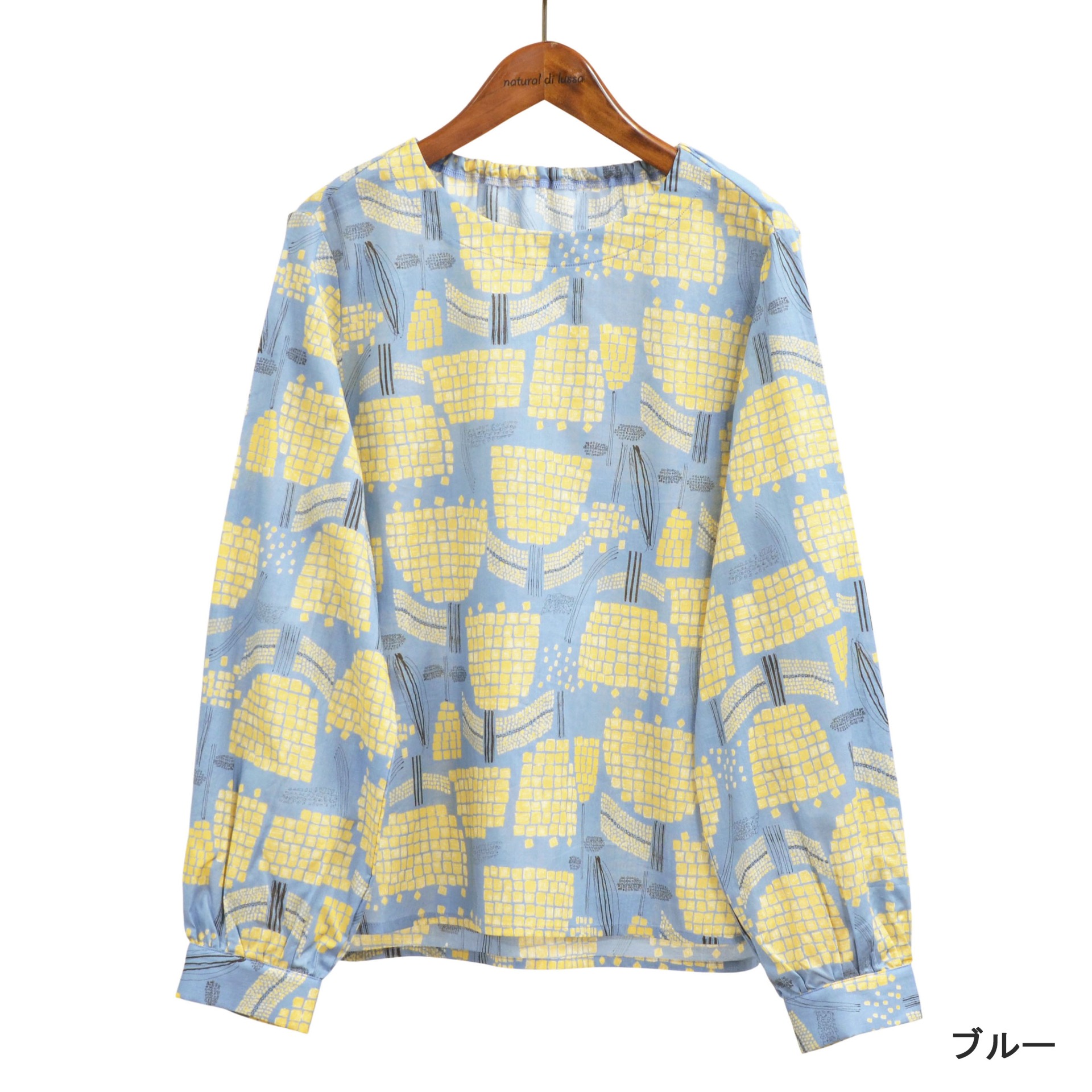 やわらかなローン素材を使用した、軽やかな着心地の「ローン ブロック花柄ブラウス」です。 落ち着いた配色のブロック調花柄が、大人の女性にふさわしい上品な印象を演出します。 ゆとりのあるシルエットとふんわりとした袖デザインで、さりげなく体型カバーも叶えます。 一枚で華やかに、ジャケットやカーディガンのインナーとしても活躍する着回し力の高いアイテムです。