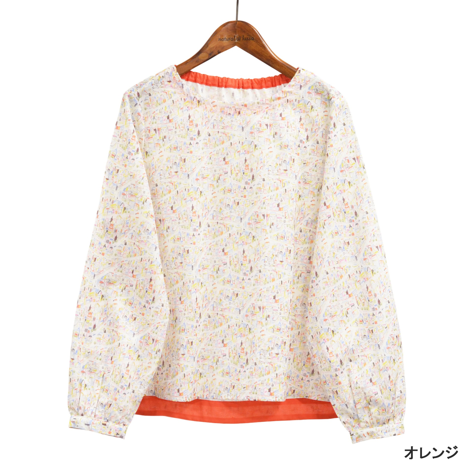 繊細なタッチで描かれた街並みプリントが目を引く「ローン 街柄ブラウス」です。 軽やかで通気性のよいローン素材を使用し、長時間でも快適にお召しいただけます。 首元と裾の内側に配色切り替えが施されており、見えない細部まで可愛いを詰め込んだ1枚。