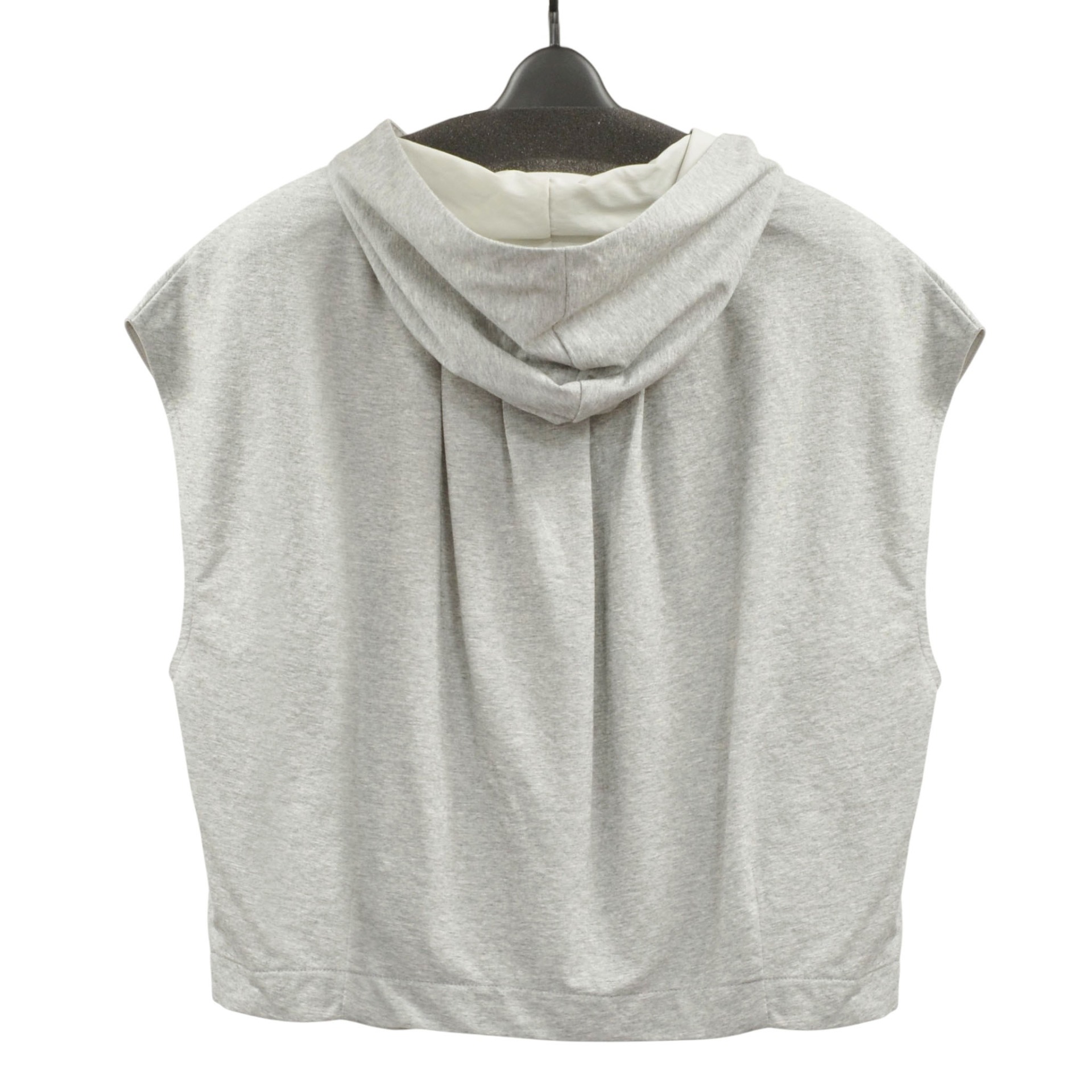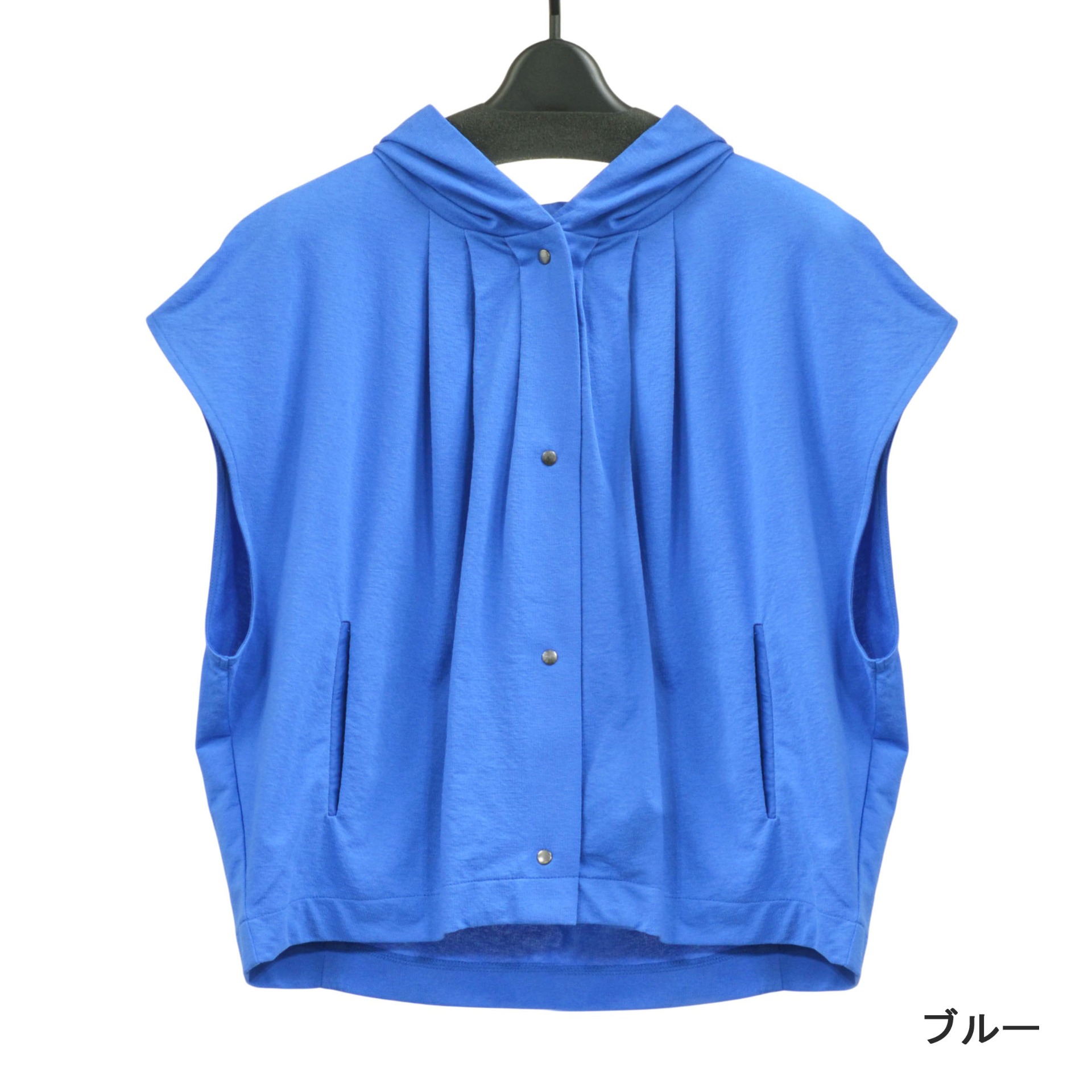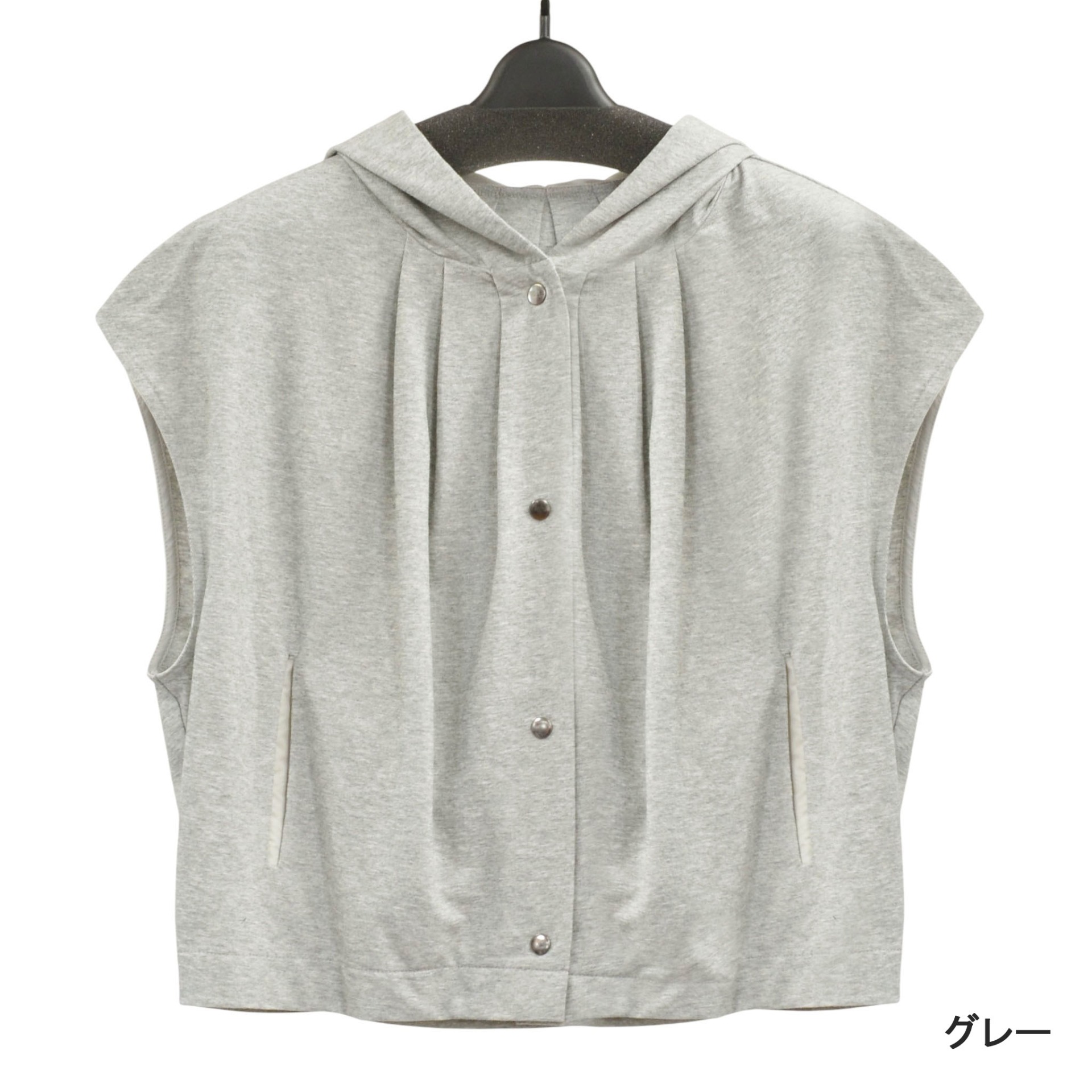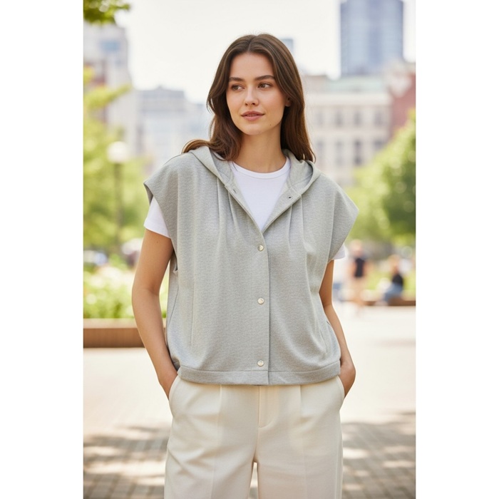 カジュアルさと程よいきれいめ感を兼ね備えた、フード付きカットソーベスト。