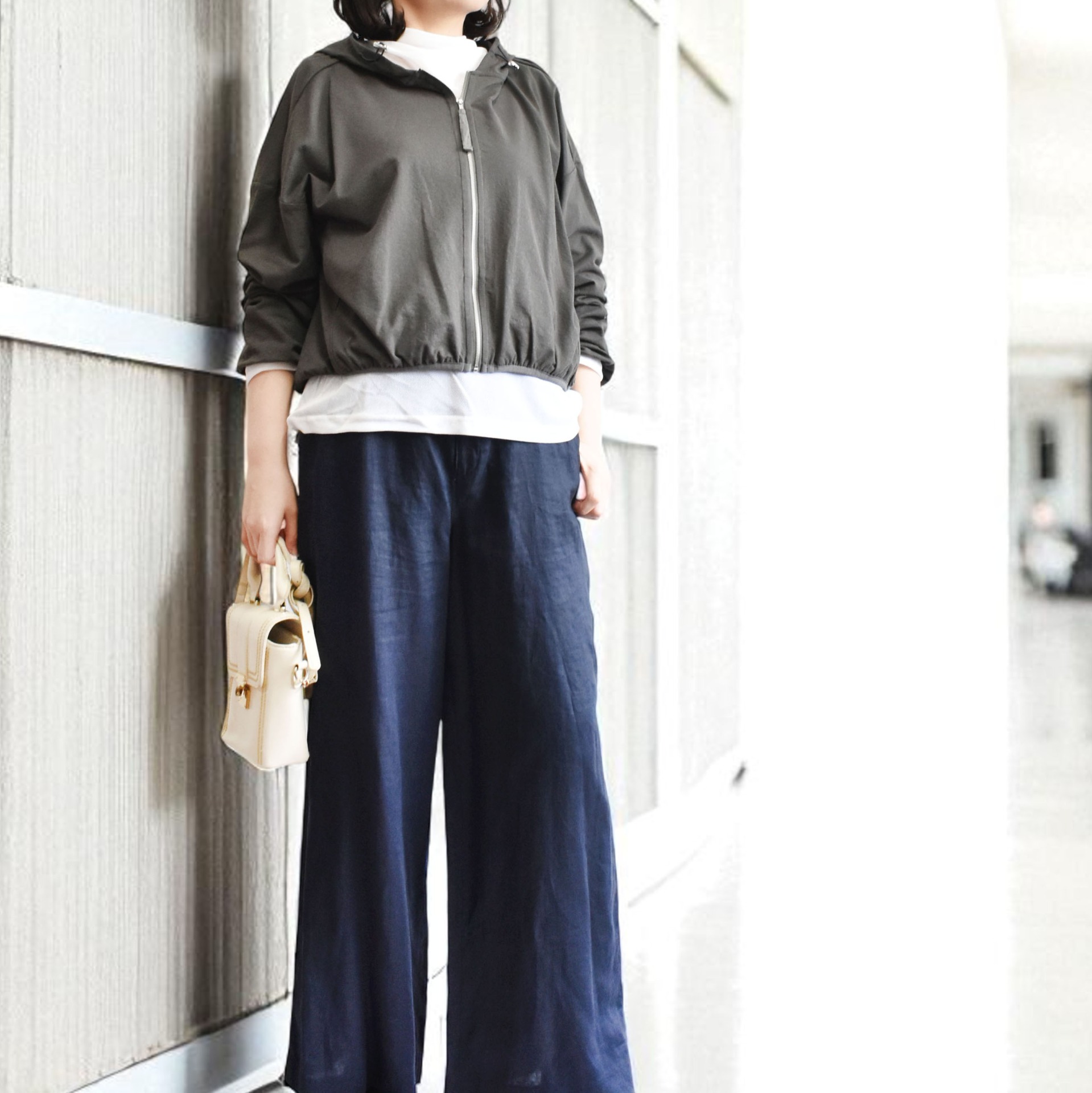 フロントのジップを開けてラフに羽織ればカジュアルに、閉めてコンパクトにまとめれば洗練された印象に。