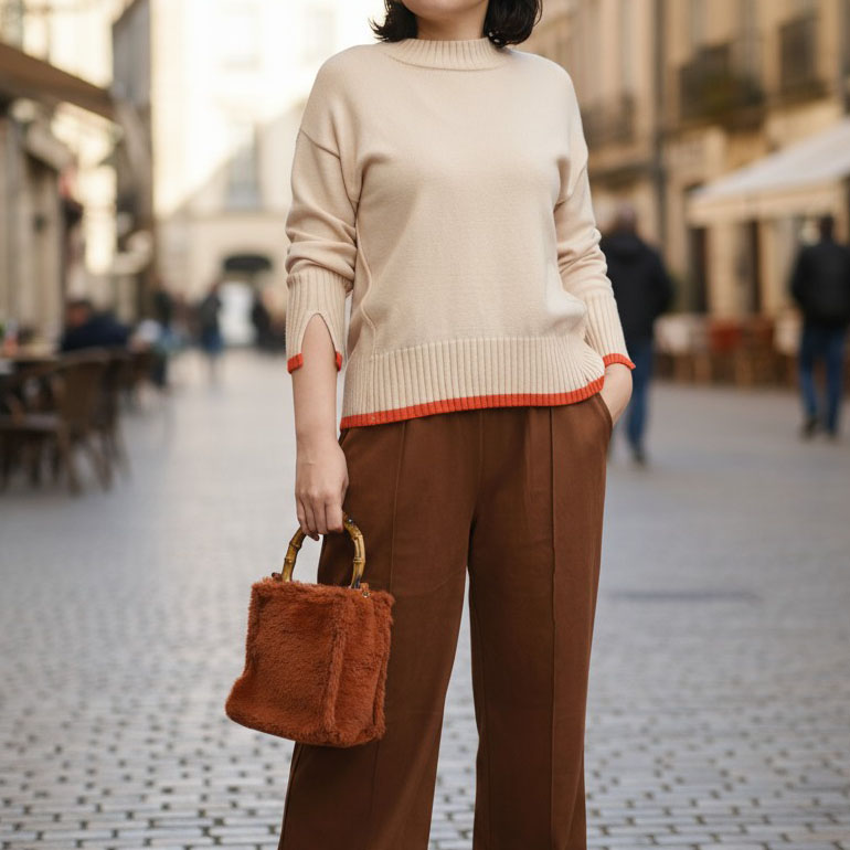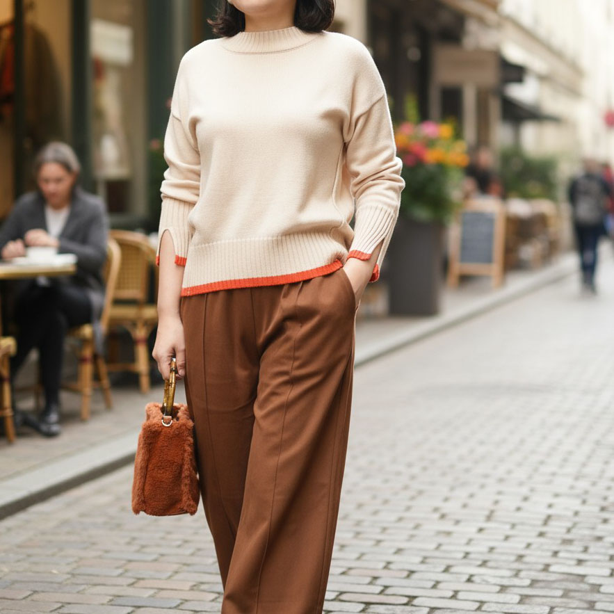 シンプルな中にさりげない遊び心を添えた、裾配色プルオーバー。